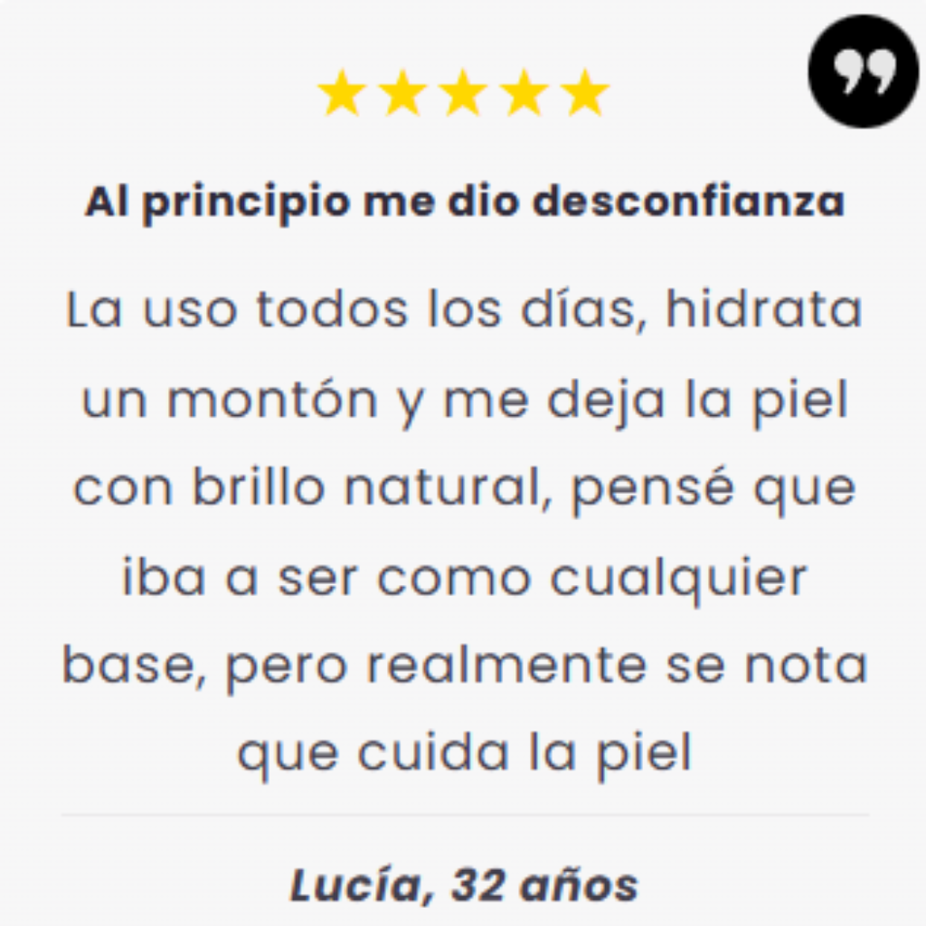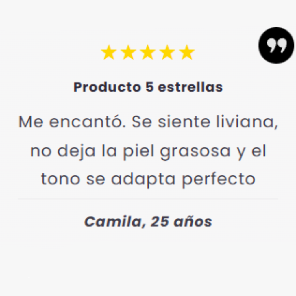 Más que una base es una aliada diaria que simplifica tu rutina y realza tu belleza natural. Su acabado fresco y natural deja la piel radiante, protegida y suave, perfecta para el ritmo acelerado de cada día o para quienes prefieren un look sin esfuerzo pero con resultados visibles.